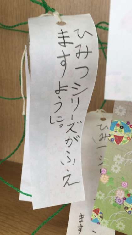もうすぐ七夕です。図書室では、願い事を書いた短冊が飾ってあります。やはり図書室。お気に入りの本が入るように願う短冊がありました!「りっぱな大人になりますように」という願いもありました!!