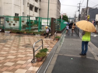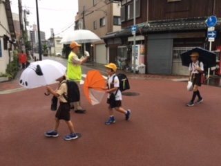 毎日地域の皆さんが、子どもたちの登校を見守ってくださっています。今朝は、小雨が降っていました。傘で見通しも悪く、歩きにくい様子でした。「おはよう!」「元気?」「まだ、まにあうよ」など、交通整理をしながら、優しく声をかけてくださっています。ありがとうございます。