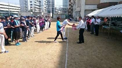 選手、関係者のみなさま、セミの鳴き声が聞こえるほど暑くなっております。熱中症やけがに気をつけていただき、ソフトボールを通して楽しく交流が図れますよう頑張ってください。