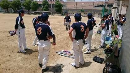 男子チームの1回戦は高殿南と対戦しました。お昼近くになり、グランドの温度はどんどん高くなっています。