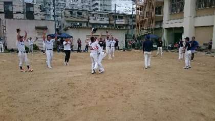 最後の戦いも一発では決しません。やはり何度もあいこが続きます。静寂とどよめきが何度繰り返されたことでしょうか、とうとう勝負が決しました。結果は旭陽中学校の勝利!ソフトボールの試合と同じくらい白熱したじゃんけんになりました。