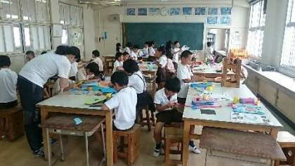 3年生は伝言板を作っています。出来上がりをイメージした設計図を元に、それぞれ思い思いの制作を楽しんでいます。コルクの部分にメモやプリントを貼りつけるそうです。完成に向けて、がんばってください。