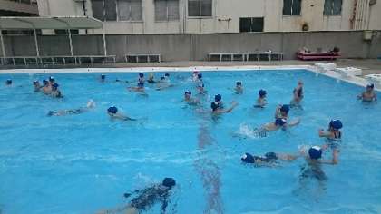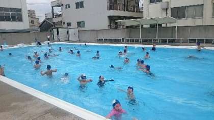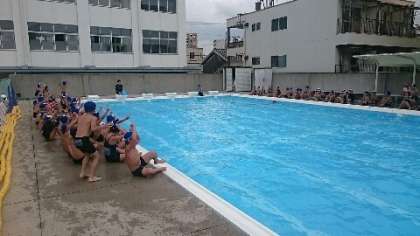 2年生のプール水泳。この日も恒例の石拾いが行われました。結果は…、1組33個、2組36個で2組が勝利!大きな歓声とガッツポーズがとびだしていました。