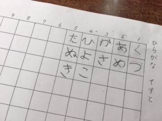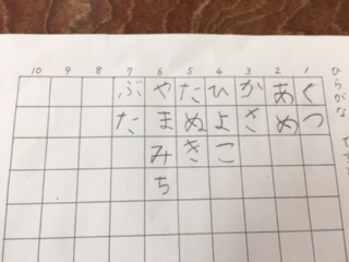 聞き取りテストをしました。先生がゆっくり話したことばを書きました。みんなしっかり聞いて、ていねいに書いていました。1学期の間に本当に大きく成長した1年生です!