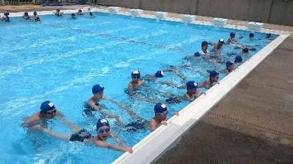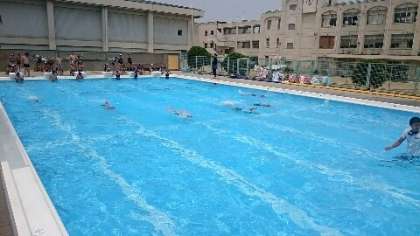 今日は平泳ぎにチャレンジです。難しい足の使い方を友だちに手伝ってもらいながら練習しました。その後、泳力テストに臨みました。4年生の目標は20メートル。たくさんの人たちが達成していました。