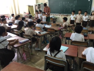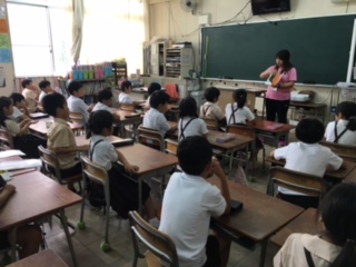 隣の組では、先生が今年の夏の課題図書の紹介をしていました。各学級に配布しています。たくさんの人に読んでもらいたいです。