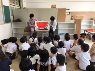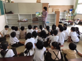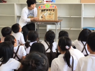 旭区の読み聞かせボランティアさんが来てくださり、紙芝居や大型絵本などを読んでくださいました。とても上手な語りに、子どもたちは引き込まれていました。ありがとうございました!