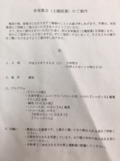 手紙等でおしらせしていますが、本日2時間目、9時40分〜10時25分まで、講堂で全校児童が、生涯学習ルームのコーラス隊の方と歌のコラボレーションを行います。お家の方もぜひ一緒にご参加ください!お待ちしています。