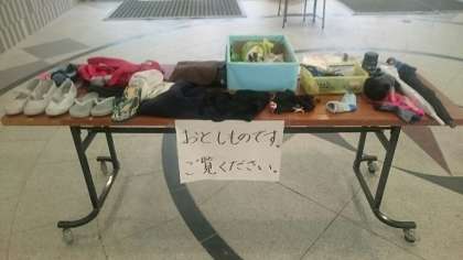 持ち主と離れてしまった品々。学校の玄関に、悲しそうに佇んでいます。心当たりのある人は確認してください。