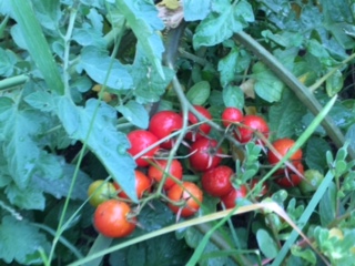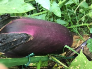 葉っぱの陰に隠れて、大きな大きなナスビができていました!ミニトマトも真っ赤に熟れて美味しそうです!