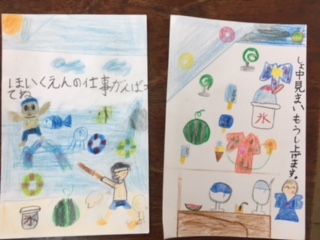 寄贈していただいたはがきを使って暑中見舞いを書きました。エコ俳句にも夏休み挑戦する3年生です。