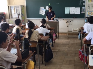 夏休みの過ごし方などについて話を聞きました。2組では、6月末から香港から体験入学していたE君のお別れドッジボール大会を行いました。