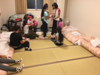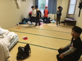 2日目の朝があけました。早くから起きていた子もいましたが、みんな元気です。布団を片付けて、朝の集いの準備です。