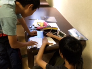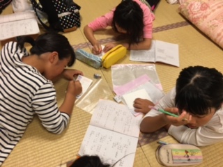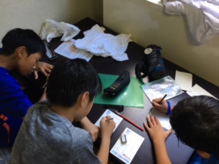 入浴タイムの前後にハガキを書いています。たくさんの思い出ができました。ハガキに書ききれないくらいです。ちょっぴりお家が恋しくなった子も・・・。