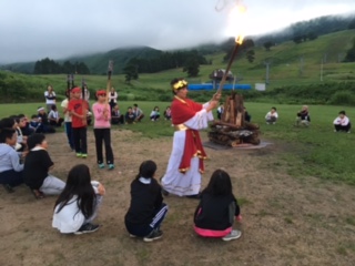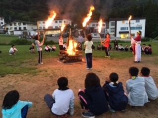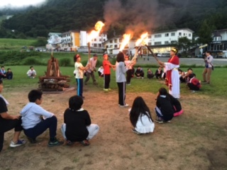 火の神と火の子たちの登場です。永遠の光とそれぞれ4人の火の子達に、自信・勇気・友情・愛の火を授けました。