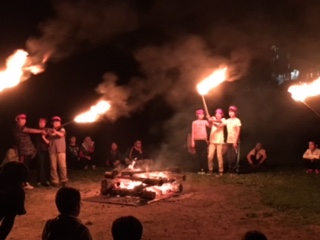 キャンプファイヤーもいよいよ最後となりました。火の子達が、誓いの火を再度確認しました。