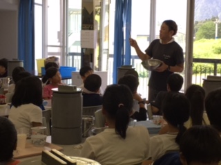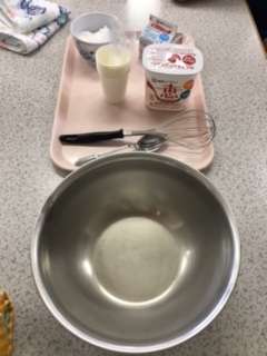 今から食堂でアイスクリームを作ります。説明をよく聞いてみんなで協力して作ります。