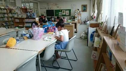今日も図書館開放で子どもたちが大勢来ました。夏休みになっても、学校で子どもたちの姿がたくさん見られます。にぎやかでうれしいです。