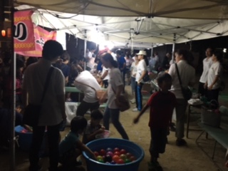 ヨーヨーすくいなどのお店や、ホットドッグ、焼きそば、焼き鳥などのお店も出ています。