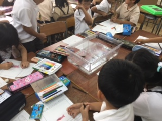 2年生の教室にやってきたザリガニたち。子ども達は、すぐに仲良しになりました!よく観察をして、様子を絵や文で表しました。名前もそれぞれつけたようですよ。大事に飼おうね!
