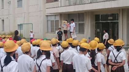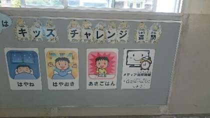 健康委員会から、今日から始まるキッズチャレンジの呼びかけがありました。聞きやすい声の大きさで、ポスターを見せながら分かりやすく伝えていました。