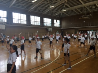 運動会では「エイサー」を踊ります。今日は、「島人ぬ宝」の曲に合わせて踊りました。一人一人が何をどんな風に表現していくか、練習を重ねて深みが出て来ます。楽しみにしていてください。