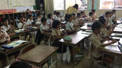 廊下から、とても美しい声が聞こえてきました。「とどけよう このゆめを」という曲を、リコーダーと歌で表現していました。「お互いの音をよく聴いて合わせようとすることが大切なんだよ」と教頭先生が、教えてくださいました。4月から始めたリコーダーもとても上手になってきました。