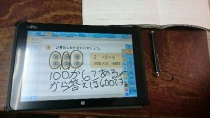 問題についてなぜそのような答えになるか、自分の考えをタブレットに書きます。そして、タブレットに書いたみんなの考えが電子黒板に写し出されます。それらを見ながら発表を聞くので、友だちの意見が大変分かりやすくなりました。