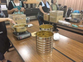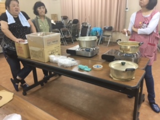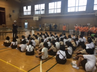 消防署、警察の方々の応援を得て、5年生の子ども達は、災害時の注意や様々な体験学習をさせてもらう事ができました。地域の女性部やPTAの方々が、炊き出しのカレーライスや山菜たきこみごはんなどの準備を朝早くからしてくださいました。お米は、アルファ化米で、備蓄倉庫に置いてあります。