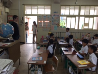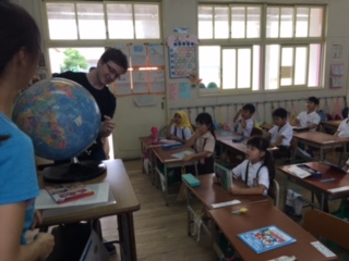 地域の方のお家にホームステイしているマイケルさんが大宮小学校の見学に来られました。マイケルさんは、オーストラリアで高校の数学の先生を目指して勉強しているそうで、日本語も学んでいるとのこと。1年と3年の教室を案内しました。