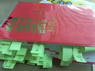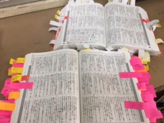 わからない言葉が出てきたら、すぐに国語辞典を引いて調べています。わかった言葉に付箋をつけています。もう100個付箋がついたという子もいます。がんばっています!!