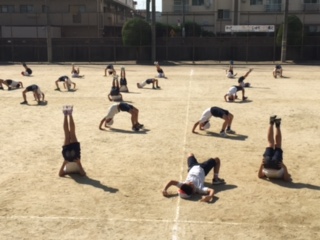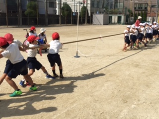 綱引きの練習をしました。腰を落としてしっかりふんばって引かないと、すぐに相手の方に引きずられてしまいますみんなの気持ちを合わせて!