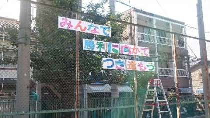 代表委員が中心になって作られたキャッチフレーズも、第2グランドの西側に掲げられました。この言葉を忘れずに熱い戦いを繰り広げてください。