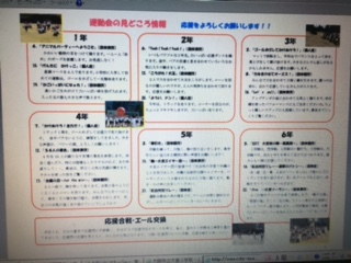 金曜日に配布しました「学校だより10月号」裏面に、「運動会の見どころ」を載せています。ホームページ右下のところをクリックすると、カラーでご覧いただけます。