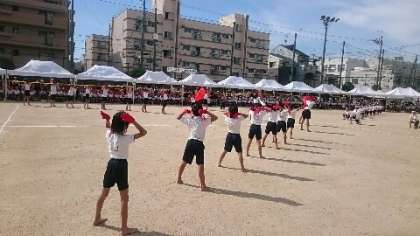 はじめの体操のあと、応援合戦をしました。満を持して、応援団の登場です。この日のために、準備はばっちりです。