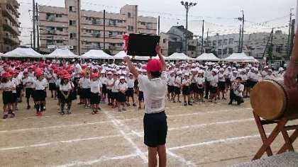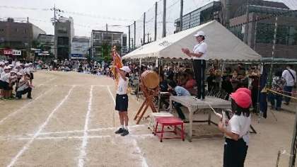 今年度の運動会は久しぶりに白組の勝利で幕を閉じました。一生懸命応援した団長はがんばった皆の代表として、旗と盾を受けとりました。
