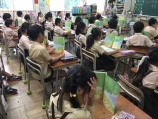 下巻の教科書の「あまやどり」という詩を読み味わいました。雨宿りした経験を思い出しながら読みました。