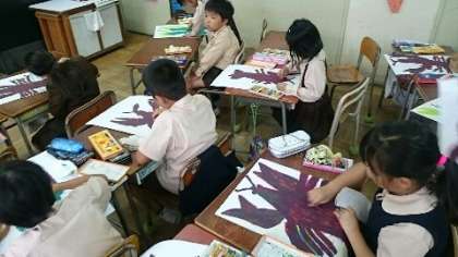 生活科の学習で育てているザリガニをテーマにして絵を描きました。どの子もパス丁寧に色を塗り重ねることができました。なかなか複雑な色で表現できています。よく観察できています。