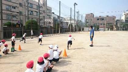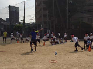 大きな声で指導される先生に元気を引き出された2年生は、思い切り体を動かして3つの競技を楽しみました。