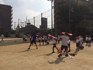 25m走、エアロケット投げ、エアロディスク投げの3つを体験しました。