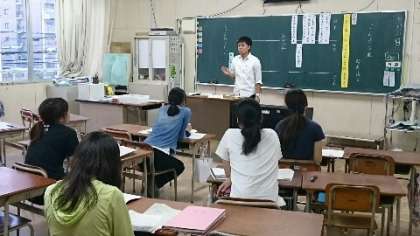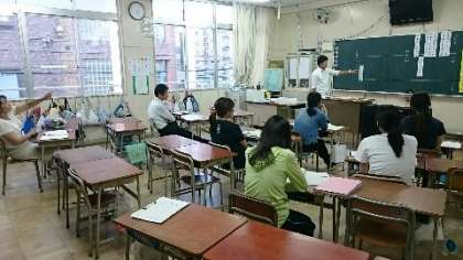 明日は4年生の授業研究会です。授業をする若手の先生がリハーサルを兼ねて、放課後に模擬授業を行いました。先生たちが子どもの役になって発表したり、つぶやいたりします。ある意味、本番よりも緊張するかもしれません。