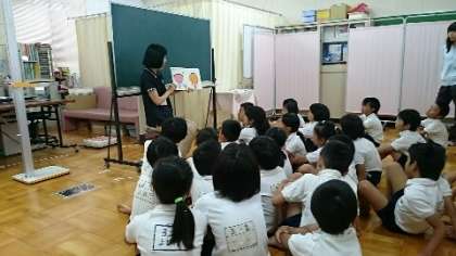 3年生が発育2測定を行いました。測定する前に今日も「目の愛護デー」にちなんで、絵本を使って目の大切さについて教わりました。