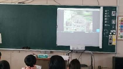 6年生が平和学習で、第2次世界大戦や原子爆弾に関する映像資料を視聴していました。とても大事な学習です。平和な時代に生きる今だからこそ、多くを学んでほしいです。