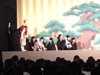 今日の演目は、「生写 朝顔 大井川の段」「えびす舞」「本朝 廿四考 奥庭狐火の段」でした。5年生が練習していたのは、「えびす舞」で、人形の扱いもなかなか上手です。また、事前に聞いていたみんなの願いごとも取り入れて、演じてくださいました。早変わりなどもあり、低学年の児童は、「お話の内容はよくわからなかったけれど、人形が生きているみたい。」「早変わりにびっくりした。」などの感想を述べていました。