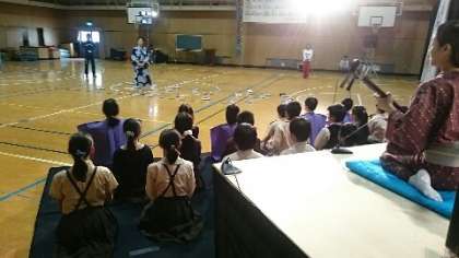 5年生が4時間目に、本番に向けてのリハーサルを行っていました。ワークショップで教わった時からだいぶ期間が過ぎていたので、口上を述べるグループは声が小さく、自信がなさそうな雰囲気でした。しかし、さすがは大宮小学校の5年生。できたことを思い出すととともに、給食を食べた後、もう一度練習したそうです。このような努力が実って、無事役割を果たすことができました。