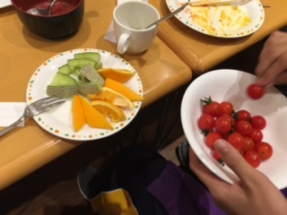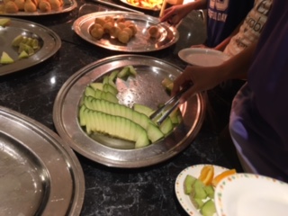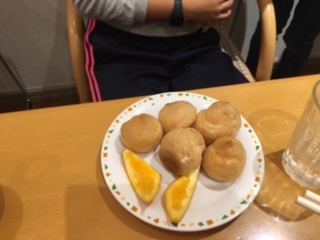 デザートのオレンジ、メロン、シュークリームが出て来ました。「ベツバラ」です!