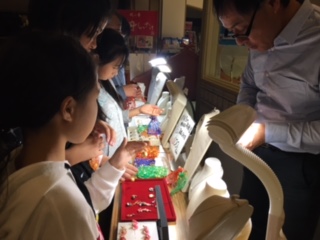 買い物のフロアでは真珠のアクセサリーも売っていて、人気です。「ここはミキモト真珠で有名なところ」
