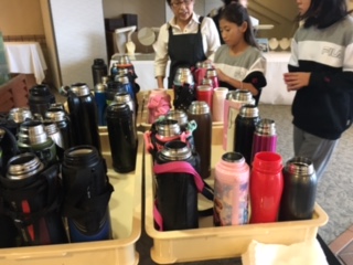 食堂にも準備を整えて早く集合しています。お茶も入れていただいています。