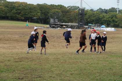 その後、広場でお弁当を食べ、ボールやなわとびを使って遊んだり、おにごっこをしたりして楽しみました。