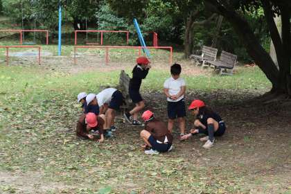 帰りには、近くの公園に寄り、ドングリを拾って、またみんなで遊びました。
